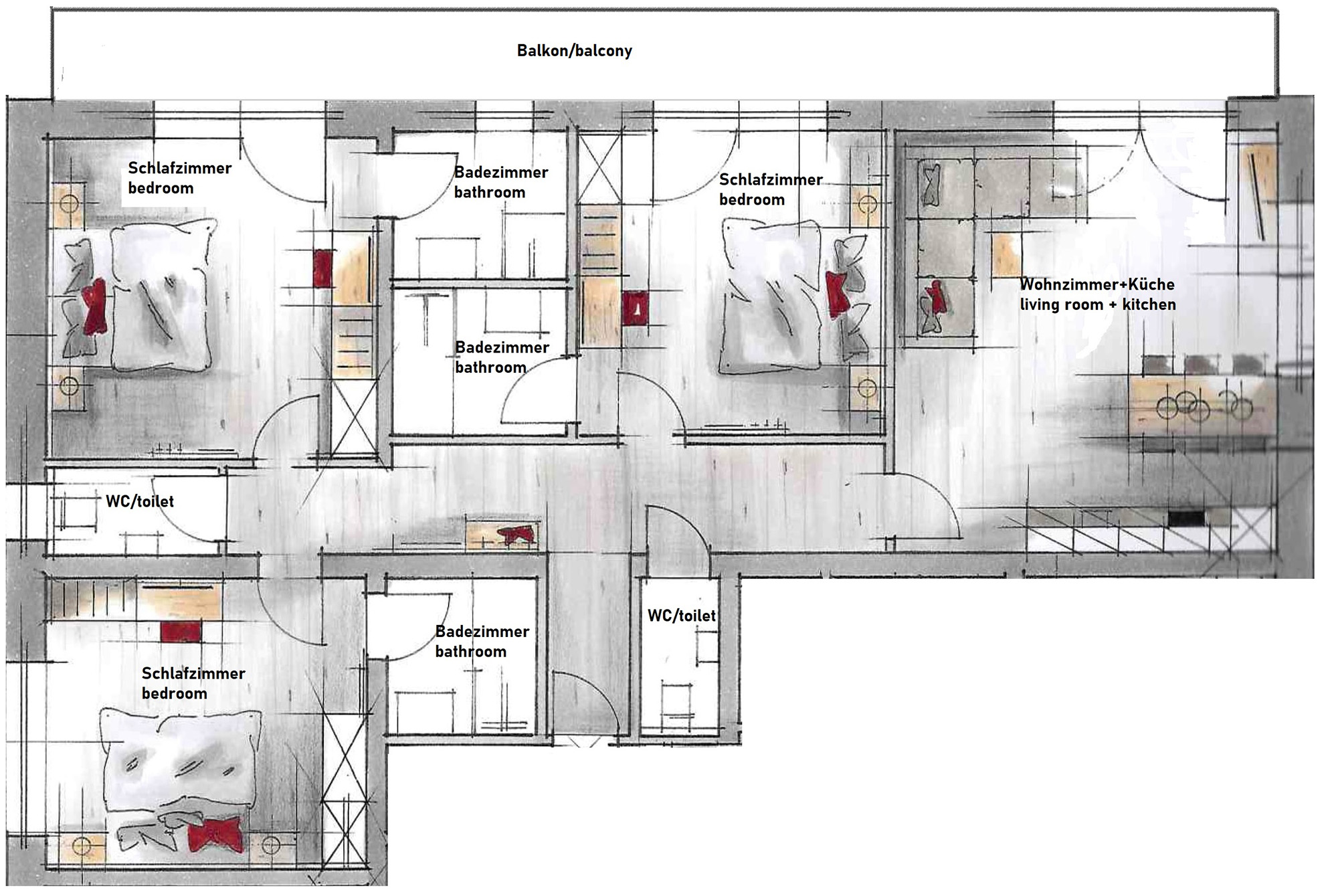 *For an occupancy of 2 persons only 1 bedroom is available, for 3-4 persons 2 bedrooms and from 5 persons 3 bedrooms.